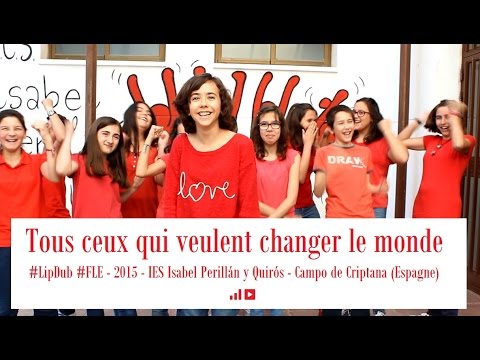 Voilà un lip dub sur "Tous ceux qui veulent changer le monde" de l'IES Isabel Perillán y Quirós qui peut vous donner des idées pour faire vos propres lip-dubs avec vos élèves